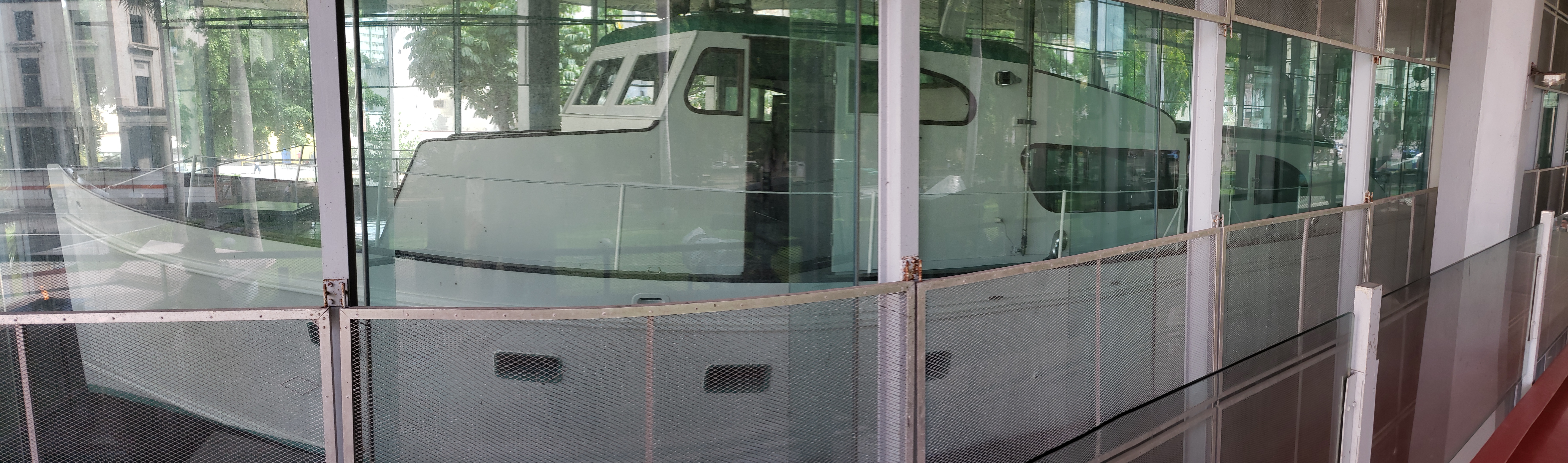 The infamous yacht is kept behind glass.