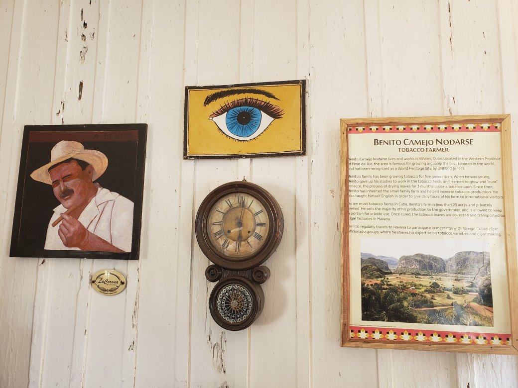 A tobacco farm, where we learned about how the best tobacco becomes the best cigars in the world, puffed on freshly rolled cigars, and sipped on Cuban coffee spiked with Cuban rum with Benito, the owner of the plantation.