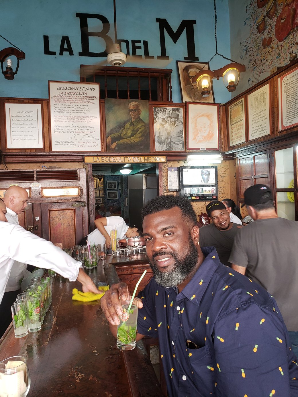 La Bodeguita is famous for its mojitos. The first time we walked by there we could not even get in the door, because there was no room. People were spilling out of the place. I believe it was a Friday. The following Tuesday we got lucky. The mojitos are great. A mojito was always my go-to cocktail so I was excited to have Havana’s take on it because that’s its birthplace. But I gained a new appreciation for the daiquiri, a drink named after a beach in Cuba.