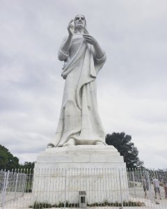 Cristo de la Habana, a 20 foot, 320 ton statue of Jesus carved out of Carrara marble by Cuban sculpture Jilma Madera that overlooks Havana Bay from the suburb of Casablanca